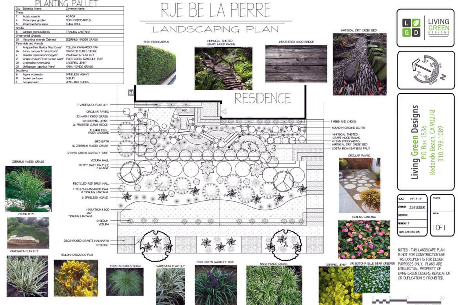 This backyard landscape in Rancho Palos Verde plays into the homes terrace hillside. A unique condition of this home is that is partitioned by two streets. From the street steps rise up to twenty feet from the street level to the whimsical dry creek bed that leads to the back door entrance. Along the way rows and groups of natives and grasses add playfulness to the landscape. A focus of this landscape is to use recycled or local materials. Wood is refurbished to be used as part of the dry creek bed to create wood bridges along the dry creek bed. Branches are carefully placed through out the landscape to give it a natural feeling.